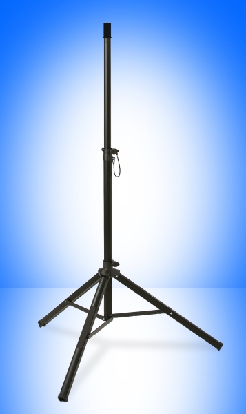 While using a pole or standard or wall fixture is preferred, when this is not possible or practical, tripods can be used. ScoreTronics offers a sturdy folding indoor tripod. It is constructed of black aluminum, extends to 76", and has a base diameter of 40". It folds to 42" when not in use and weighs just 6 pounds. This tripod can be used indoors or outdoors on level surfaces in non-windy areas. (If wind is a possibility the tripod legs must be sandbagged down.) Generally not suitable for use on grass. Includes tripod adapter (see below). Click here for indoor tripod picture