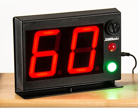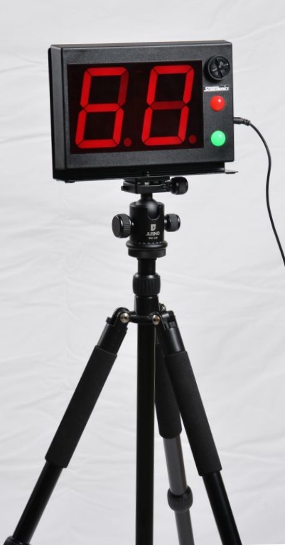 The majority of users will hang the CTT/CDT on the wall, similar to the way a clock mounts. In other applications, for instance portable and one-on-one use, it may be desirable to place the unit on a shelf or table, or on a tripod. The accessory CTT/CDT Shelf & Tripod bracket will hold the CTT-4P or CDT-4 freestanding upright for use on a shelf or a table. It also has a camera tripod fitting on the bottom for attaching to a camera tripod.